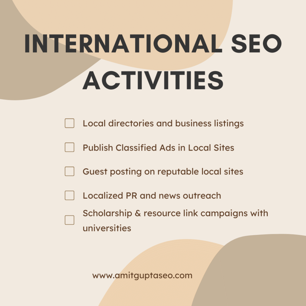You must get reliable local backlinks for your target international audience. This will make your brand known to the local audience.