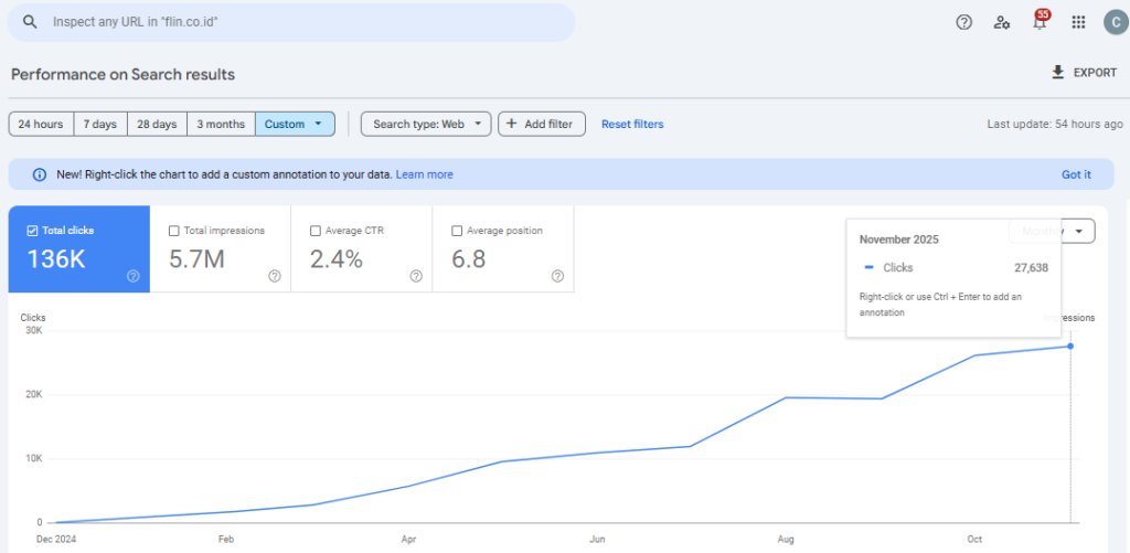 - In November 2025, website received 27,000 clicks. (shown in Google Search Console Screenshot)
